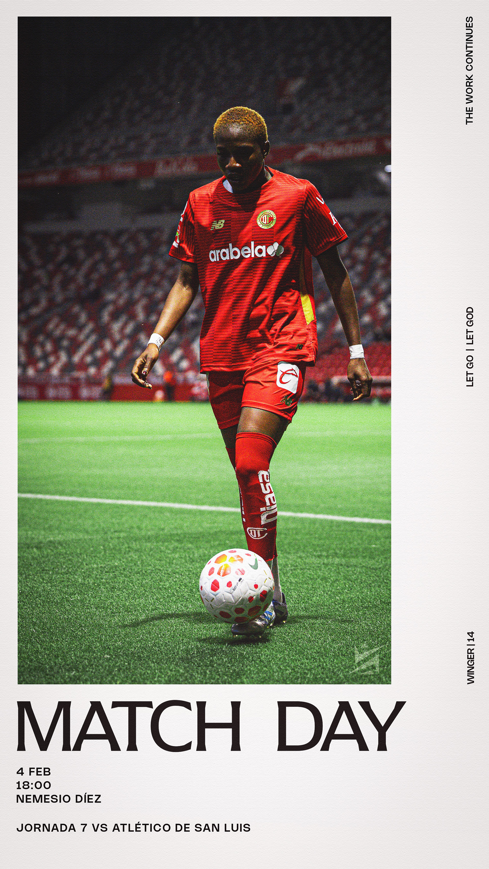 Deneisha needed a consistent seasonal approach to personal branding and content that could support her throughout a full Liga MX season without feeling forced, overly curated, or dependent on performance. The goal was to create a clear visual identity and repeatable structure that could keep up with the real pace of a professional season; including match density, travel, and international windows.